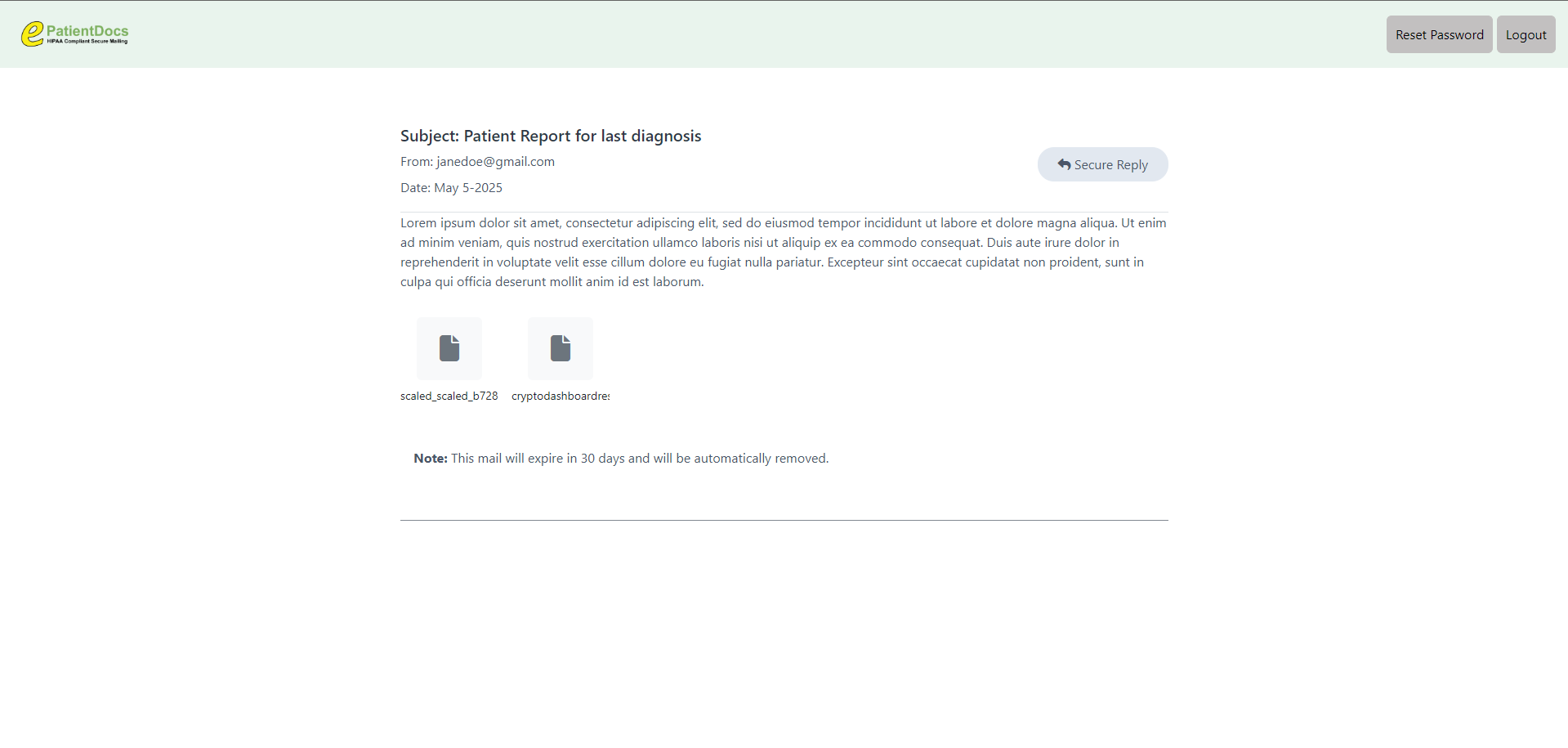 Patients will receive a mail with a secure link to the platform from where they can access the complete message.
